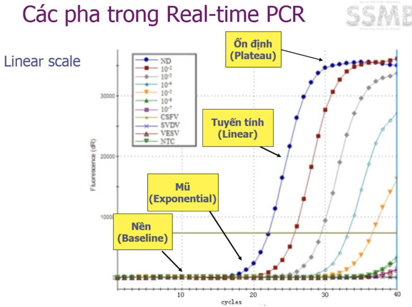 - Tín hiệu huỳnh quang vượt ngưỡng nền (baseline) tại chu kỳ cụ thể gọi là chu kỳ ngưỡng (Ct hoặc Cq), giúp định lượng DNA ban đầu.